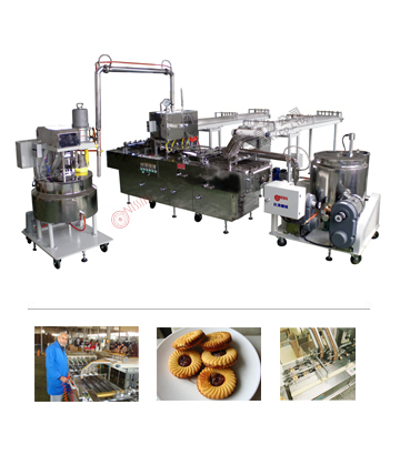 產(chǎn)品特點: 主機采用伺服電機驅動,性能更穩(wěn)定,定位更精確,運行過程中可動態(tài)調(diào)整。 光電檢測餅干,無餅的情況下不漏奶油,有餅后自動恢復供料。 可快速拆換的全不銹鋼出料模具,可以處理不同形狀和大小的餅干。 選配轉彎供餅裝置,跨越生產(chǎn)線設計,節(jié)省占地空間。 配備廢料收集系統(tǒng),便于清潔和維護。 每個奶油桶都擁有獨立的電機。 總功率:7kw 工作電壓:220v/50Hz 外形尺寸:7830*7000*1455mm 凈重:1500kg 生產(chǎn)能力:1000pcs/min 適用餅干范圍:Round:Φ45-70mm Square:(L*W):(45-80)*(45-70)mm